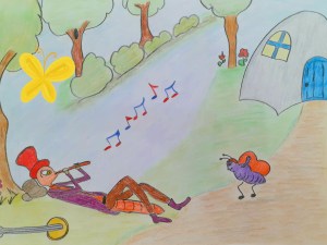 Ağustos böceği ise karıncanın arkasından gülmüş ve sazını çalıp eğlenmeye devam etmiş.