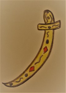 Şakilerin başı ise delikanlının atın eğer in de asılı altın kılıcı görmüş.