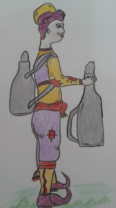 Devin yanına yavaş yavaş yaklaşıp bakınca çantasını görmüş. Dev o kadar heybetliymiş ki bir süre tereddüt etse de başka çaresi olmadığı için ; korkudan titreye titreye devin yavaşça bacakların arasından geçip çantayı açmış ve haritayı almış. Bir bakışta çıkışı öğrenip haritayı devin yanına bırakıp mağaradan hemen çıkmış. Sonrada yola düşmüş. O önde kuş arkasındaymış. Bir süre yol gitmişler derken kuş gelip omuzuna konmuş.