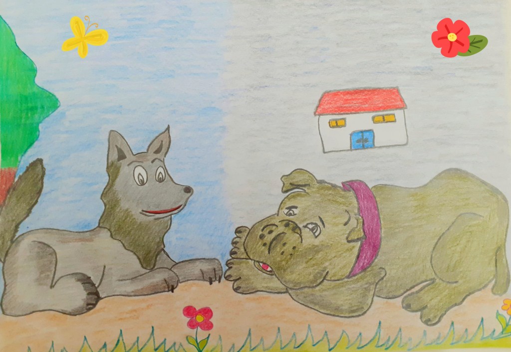 Bir zamanlar bir ülkenin bir köyünde köpekler kurtlara göz aştırmaz olmuşlar Kurtlar açlıktan tazıya dönmüşler. Bir gün dağlarda gezen kurt bir çomar görmüş. Kerli ferli, yağlı , besili ,parlak tüylüymüş bu çomar. Kurt bakmış çomar yolunu şaşırmış kendi kendine ‘ saldır şuna lokma lokma et’ diye düşünürken bakmış kan gövdeyi götürür ’Kelleyi pahalıya verece’. Kurt ne yapsın alttan almış . Ahbaplık kurmuş birazda pöh pöhlemiş köpeği : ‘ İyi ense yapmışsın maşallah ‘ demiş.