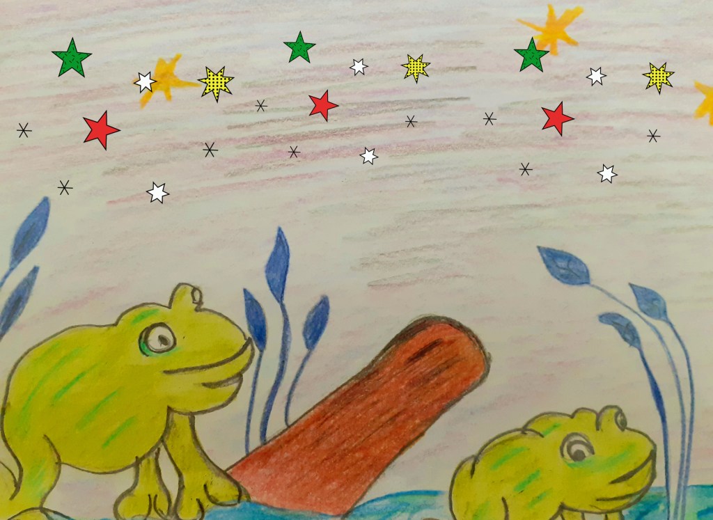 Uzun zaman başını çıkarıp bakan olmamış. Oysa korktukları şey bir kütükmüş. Ama öyle ciddi , öyle heybetliymiş ki kütük, ilk çıkan kurbağa yüzeye zor çıkmış. Korkudan titreye titreye çıkmış ve yaklaşmış koca devletliye. Diğerleri de bakmış bir şey olmuyor onlarda çıkmışlar.