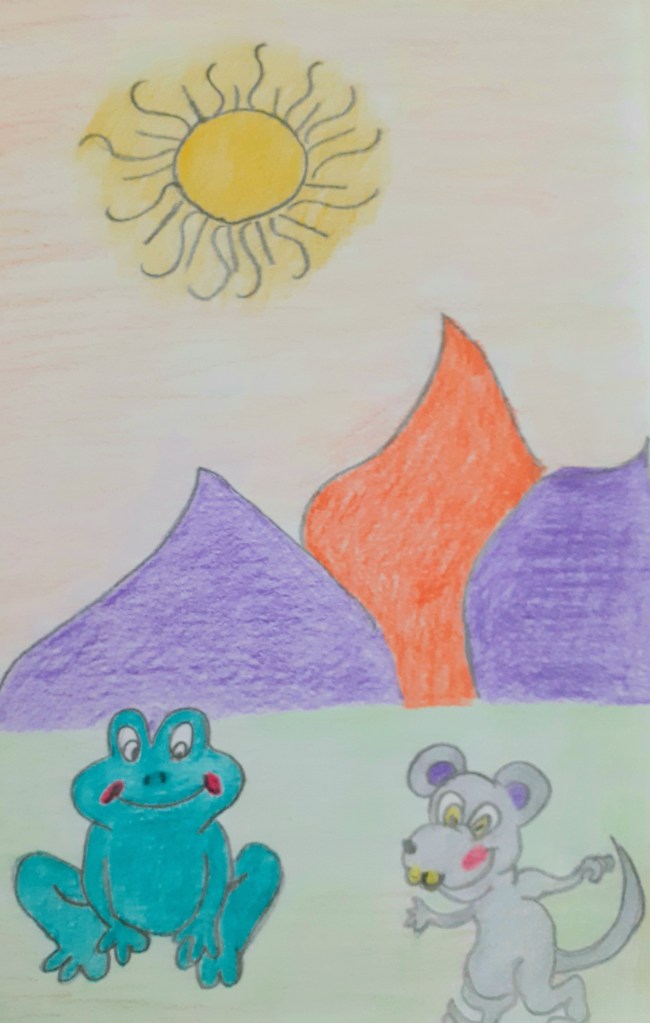 One day, a mouse went out for a stroll. This mouse has never been on a fast. He was fed. While walking , he to the shore of a swamp. He was going to rest here and go on his way. A frog came out of the swamp. The frog also tok care of an oily fed mouse;