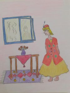 Zaman geçmiş kadın çamaşırları bahçeye asmaya çıkınca peri odaya süzülüp kızın yanına gelmiş. Sonrada kızın başından aşağı parıl parıl parlayan tozlar serpip ‘ Güzel kız gerçek bir peri Kızı olacaksın. Annenin kızı benimde eşim olacaksın ‘ demiş.Sonrada tekrar pencere kenarına gizlenmiş.