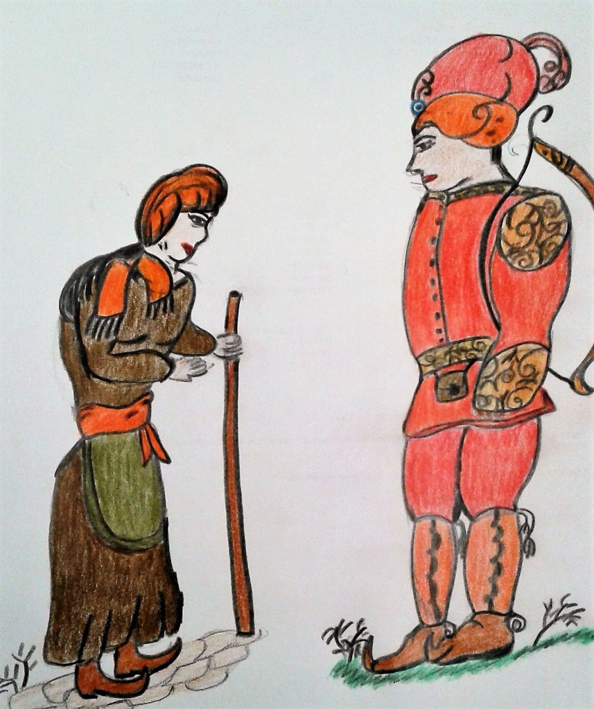 Yaşlı kadın da: Oğlum ne yapayım Hasta kocama her derde deva otlar topladım ilaç yapmak için evime giderim. Bana yardım edersen çok memnun olurum demiş. Kız kadının çuvalını almış başlamışlar yürümeye.